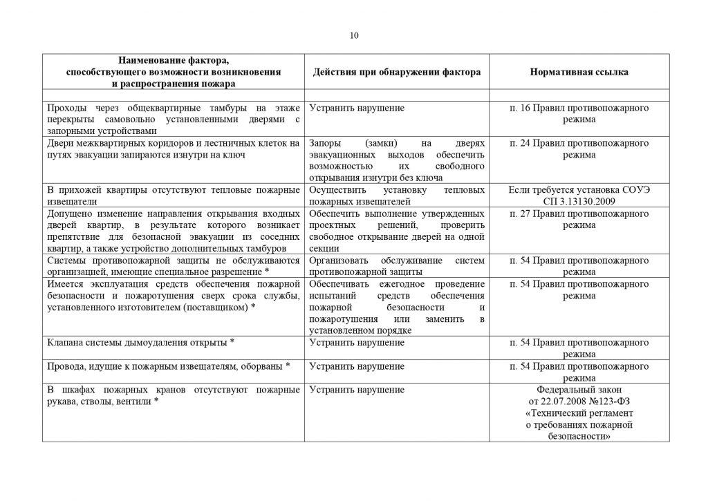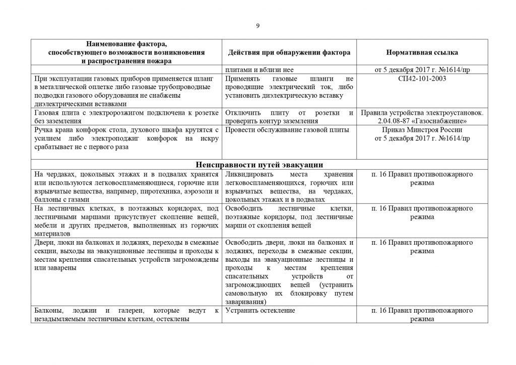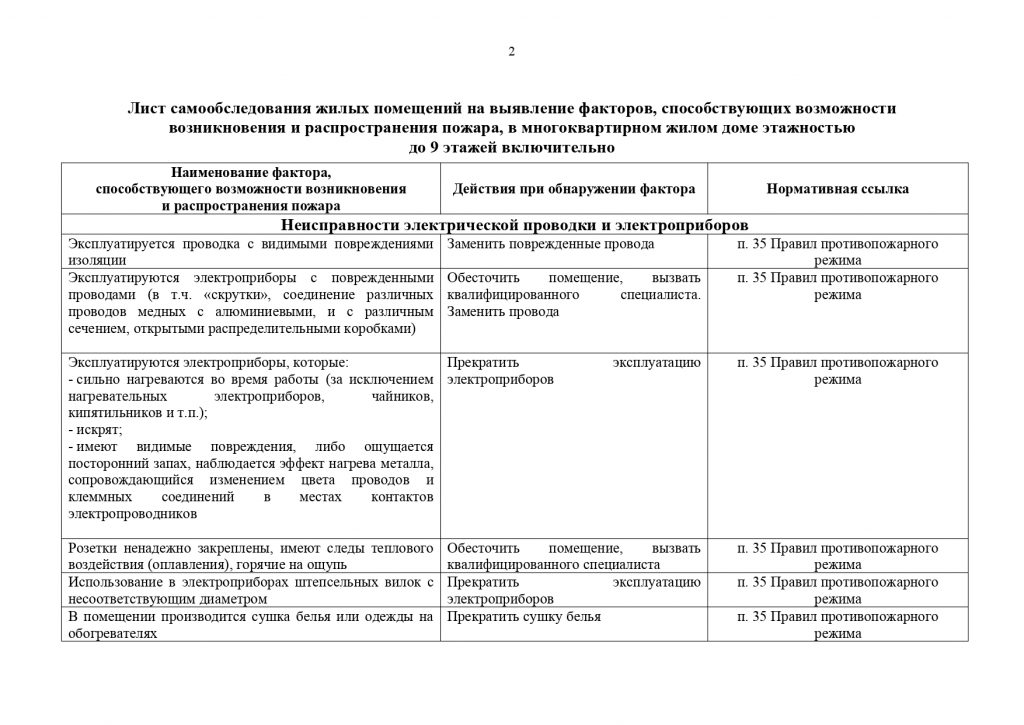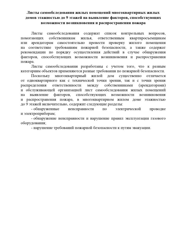 Листы самообследования жилых помещений многоквартирных жилых домов этажностью до 9 этажей на выявление факторов, способствующих возможности возникновения и распространения пожара